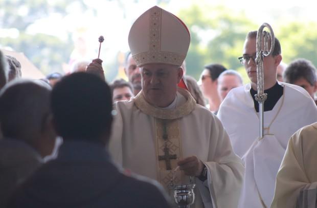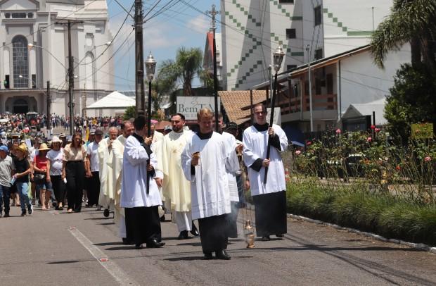 O momento de maior fluxo de fiéis devotos, no entanto, foi registrado pelas 10h durante a Missa solene, presidida pelo bispo diocesano de Caxias do Sul, Dom José Gislon. A celebração contou com a presença do bispo emérito, Dom Alessandro Ruffinoni, do reitor do Santuário, padre Ricardo Fontana, e de outros sacerdotes diocesanos e religiosos.