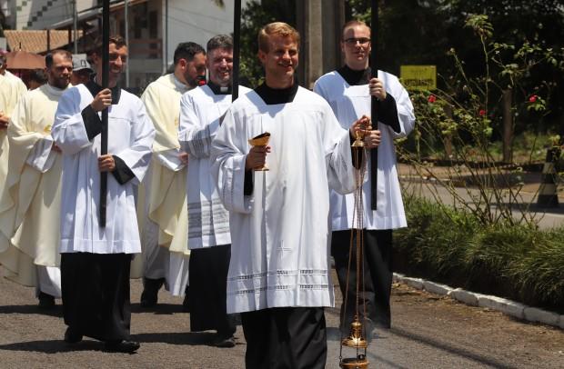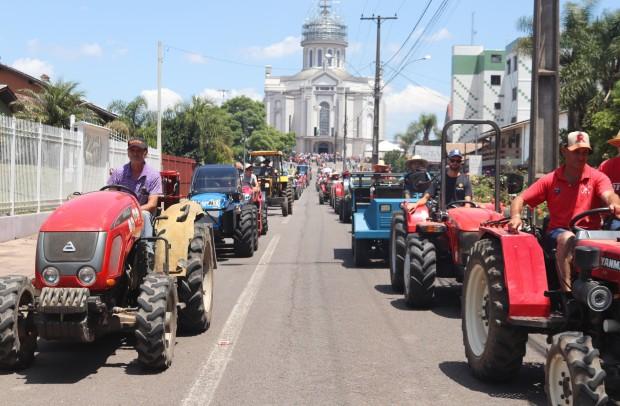 Logo depois, centenas de tratores e outros implementos agrícolas seguiram o carro-andor com a imagem de Nossa Senhora de Caravaggio em procissão pela Avenida Dom José Baréa e, ao retornarem, as famílias e máquinas foram abençoadas. No interior do Santuário, os padres também realizaram a bênção da garganta, por intercessão de São Brás, que será celebrado no sábado, dia 03 de fevereiro.