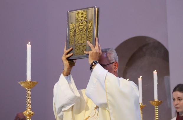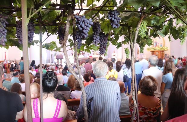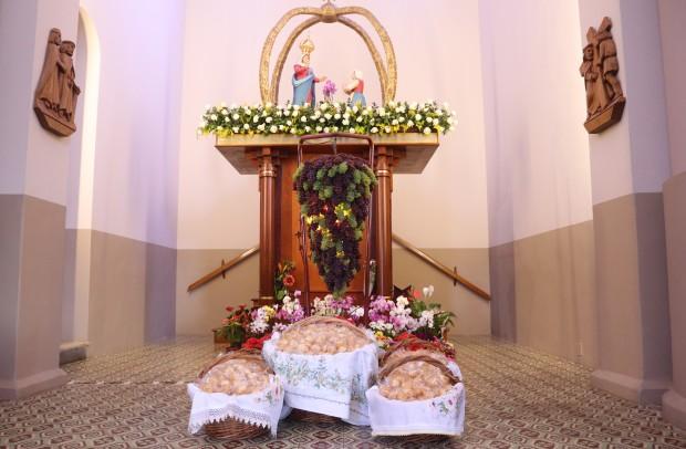 Durante a Missa da liturgia da Apresentação do Senhor aconteceu a bênção das velas, na recordação de Jesus, luz do mundo. O Santuário, que ficou lotado para a celebração, estava decorado com uma videira logo na entrada e um grande cacho de uva, formado por dezenas de cachos das parreiras das propriedades locais, diante da imagem de Nossa Senhora de Caravaggio.