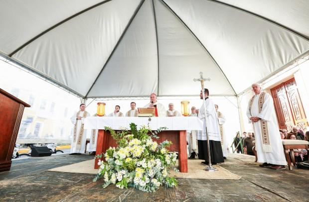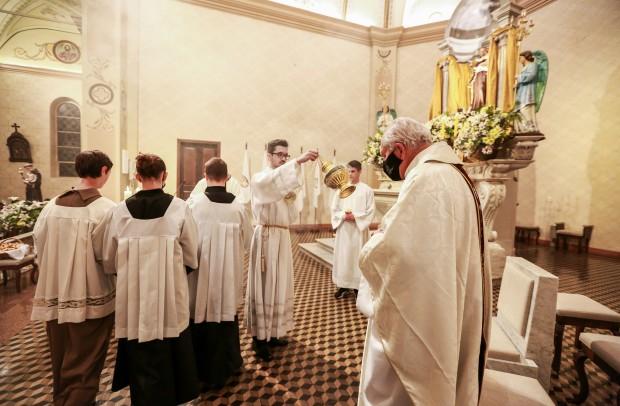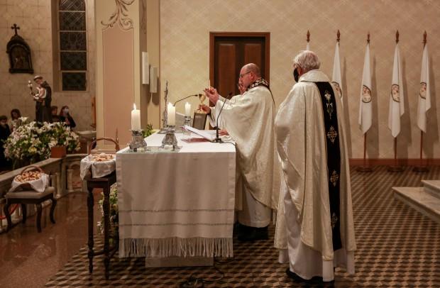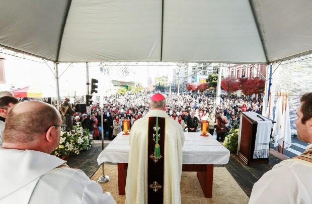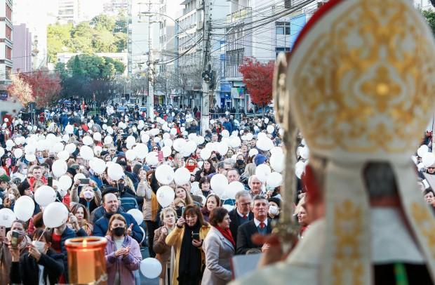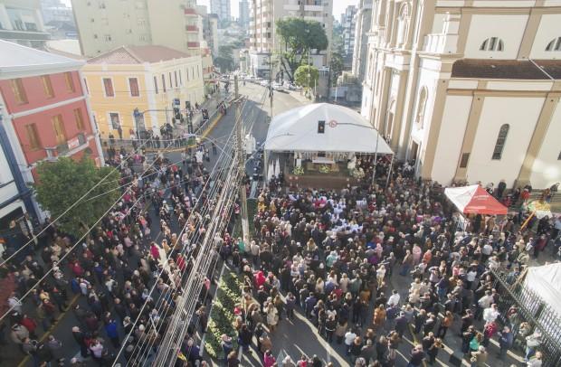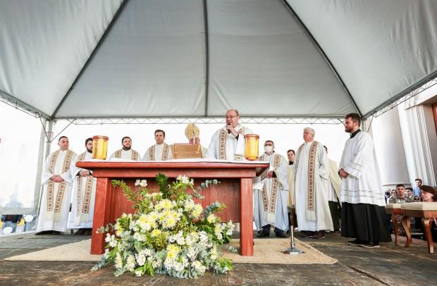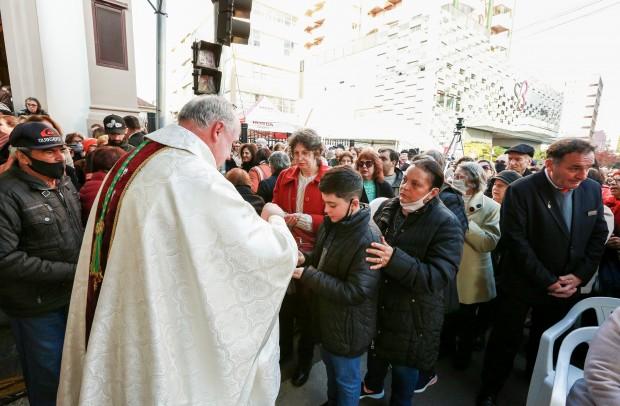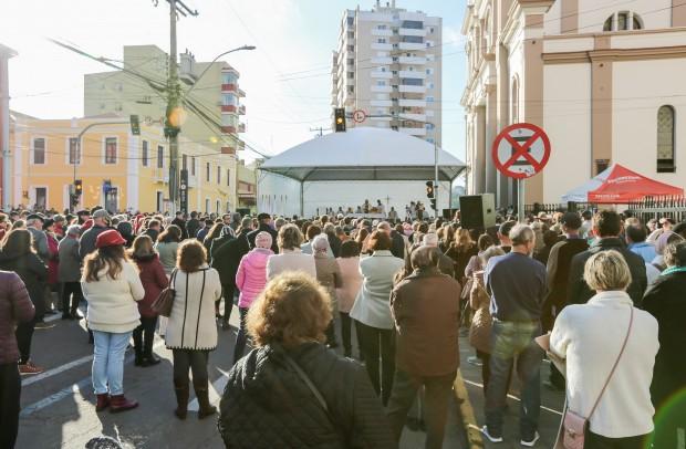 O ponto alto das celebrações ao Padroeiro de Bento Gonçalves foi a Missa das 15h, com a presença do bispo da Diocese de Caxias do Sul, Dom José Gislon. A celebração aconteceu em frente ao Santuário Santo Antônio, e reuniu mais de 5 mil devotos, segundo a estimativa da Secretaria Municipal de Segurança Pública, além de diversos padres, religiosas, ex-festeiros e lideranças. Em sua mensagem inicial, o bispo colocou suas intenções, por intercessão de Santo Antônio. “Trago no altar do Senhor, a vida de todos vocês, o povo de Deus desta cidade, os devotos de Santo Antônio, os festeiros que se dedicaram para concretizar estes festejos, os doentes, os jovens e os desempregados. Diante da ternura e do amor de Santo Antônio para com Jesus, queremos colocar no altar a vida com todas as suas realidades”, pontuou, ao recordar também o trabalho e a missão do padre Júlio Antônio Giordani, 90 anos, que residia na Paróquia e faleceu no início do mês de maio.