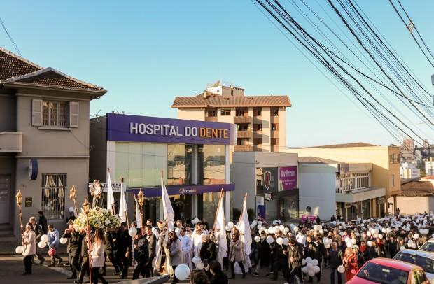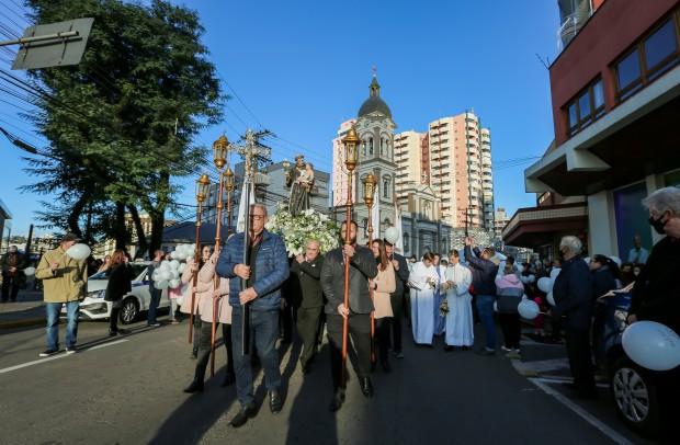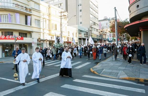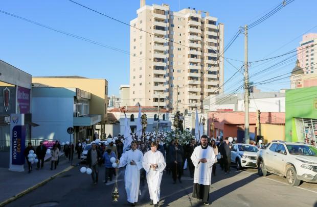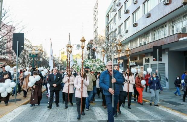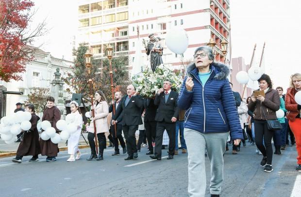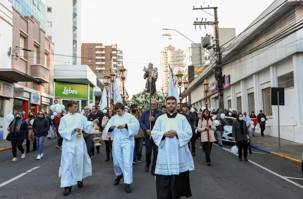 Ao final da Missa, aconteceu a procissão com a imagem de Santo Antônio pelas ruas centrais de Bento, com a distribuição de 2,5 mil balões personalizados. Quando o cortejo retornava para o Santuário Santo Antônio, o padre Luís Carlos Conci, a bordo de um helicóptero, abençoou a cidade com a relíquia do Padroeiro. Da aeronave caiu uma chuva de mais de 18 mil pétalas de rosas brancas, abençoadas no sábado, dia 11, como sinal visível da bênção. O sobrevoo foi ofertado por um casal devoto de Santo Antônio.