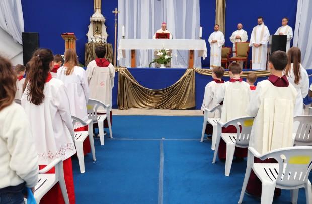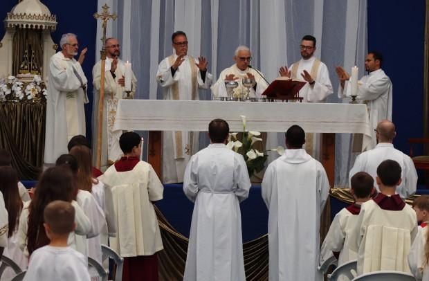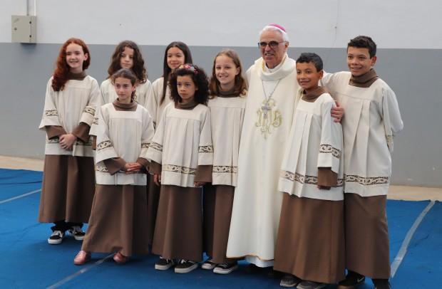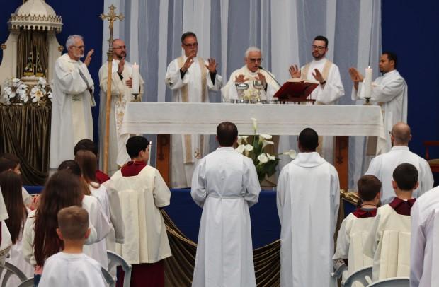 Foi Dom Alessandro também que presidiu a Missa do encontro. Os coroinhas e acólitos foram convidados a trazerem suas vestes para participar da liturgia investidos como fazem em suas comunidades, fazendo assim um belo colorido no ginásio do Seminário Aparecida.