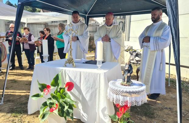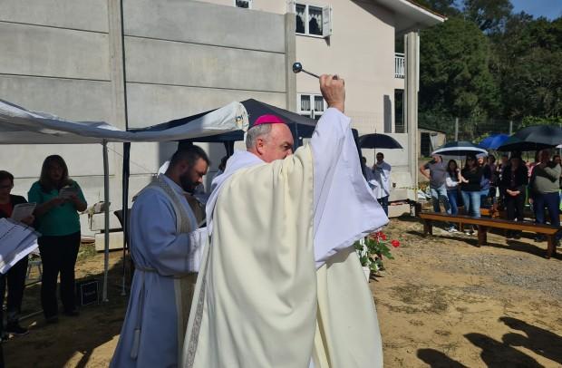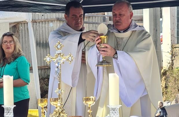 Cerimônia contou com Missa presidida pelo bispo diocesano de Caxias do Sul, Dom José Gislon, que abençoou a pedra fundamental, na companhia dos padres Kleiton Pena e Lucivan Francieski