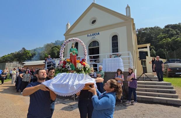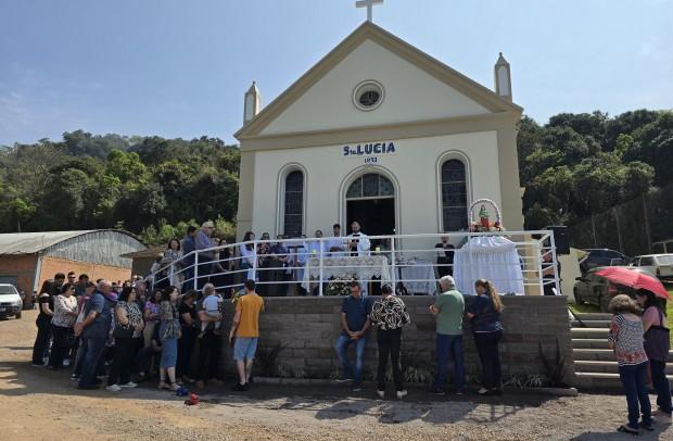 A Missa campal, que reuniu dezenas de fiéis e devotos de Santa Lúcia, padroeira dos olhos, foi presidida pelo vigário paroquial, padre Lucivan Francieski. Durante a homilia, padre Lucivan ressaltou a importância dos antepassados na construção da igreja dedicada a santa e o seu exemplo de vida. “Santa Lúcia compreendeu a lógica de Deus do serviço e de perder a vida para encontrar a vida verdadeira.” Ao término da celebração, o sacerdote abençoou as novas escadarias da igreja, parabenizando a comunidade pelo zelo com o espaço sagrado.