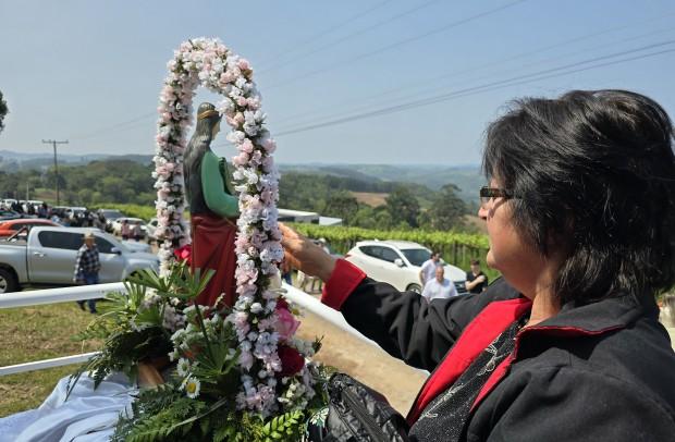 Entre os presentes, estava o casal Sérgio e Tânia Manera, devotos de Santa Lúcia há gerações. Sérgio relatou a forte devoção herdada de seus pais e avós, destacando a história de seu pai, Calisto, que há 90 anos sofreu uma queimadura nos olhos com álcool. "Minha avó Ana fez uma promessa a Santa Lúcia, quando ainda havia a antiga capela de madeira, e meu pai, desde então, enxerga muito bem," conta. Ele também mencionou outro milagre recebido: "Quando estava na meia-idade, meu pai teve outra queimadura nos olhos por causa de solda, e mais uma vez minha mãe fez promessa a Santa Lúcia, e ele se curou".