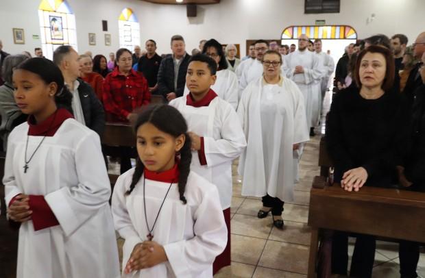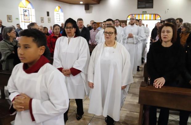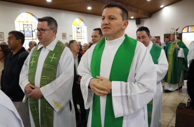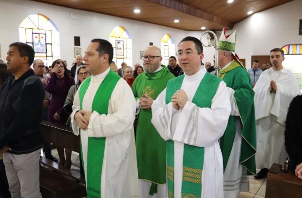 A Missa foi concelebrada pelo pároco local, padre Darlan Silvestrin, pelo coordenador de Pastoral e vigário geral da Diocese, padre Leonardo Inácio Pereira, pelo reitor do Seminário Maior São José e referencial da Diocese para a formação dos seminaristas da Teologia, padre Eleandro Teles, além do padrinho de Crisma de Leonardo, padre Ezequiel Dal Pozzo. O diácono permanente Henrique Rauch também participou da celebração. Estiveram presentes os seminaristas das dioceses de Caxias do Sul e Montenegro e de congregações religiosas.