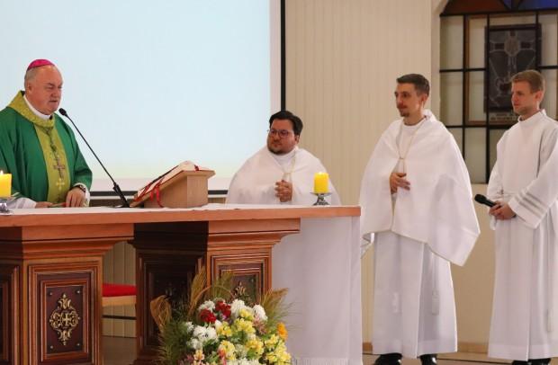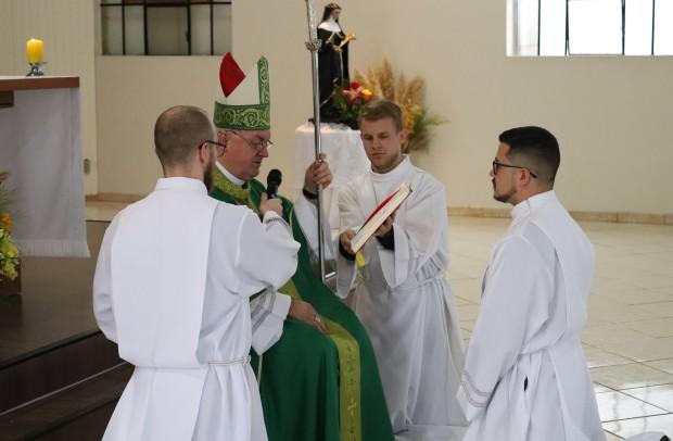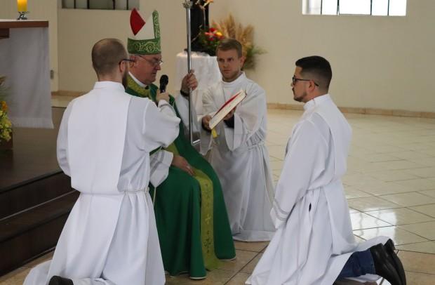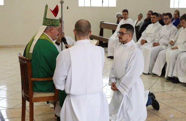Em sua homilia, o bispo contextualizou a importância de intensificar a oração e a ação pelas vocações nas famílias e comunidades. "No caminho vocacional, é gratificante ver que o Senhor continua chamando jovens para abraçarem a vocação do amor-serviço pelo Reino, através dos ministérios ordenados. Toda vocação precisa ser rezada diante de Deus, senão ela não se sustenta. Na formação e na missão, os candidatos à Sagrada Ordem precisam contar com as orações, o apoio e a proximidade da família e da comunidade de fé, para dar uma resposta de amor ao chamado que Deus faz ao coração para servir a Igreja, povo de Deus", destacou Dom Gislon.