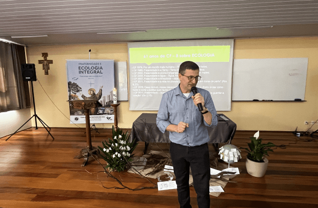 Abrindo as partilhas da manhã, o padre Anesio Ferla, pároco da Paróquia Nossa Senhora de Fátima, de Caxias do Sul, e membro da equipe nacional das Campanhas da Fraternidade, fez um panorama geral sobre os temas da CF, destacando que, ao longo das seis décadas, oito edições foram relacionadas à ecologia. Ele abordou a encíclica Laudato Si’, do Papa Francisco, de 2015, retomada pelo Pontífice na Exortação Apostólica Laudate Deum, de 2023, como um grito por uma resposta à crise climática. Em 2025 será a nona Campanha sobre a ecologia.