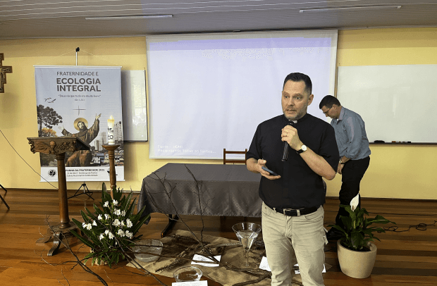 Logo depois, o padre Jean Poul Hansen expôs que o tema da Campanha da Fraternidade foi proposta pela Comissão Especial para Ecologia Integral e Mineração da CNBB em 2022, tendo sido aprovada em fevereiro de 2023. Dentre as motivações está, justamente, a celebração dos 10 anos da Laudato Si’, primeira expressão do Magistério integralmente sobre ecologia e que, através da Laudate Deum, o Papa Francisco, de modo inédito na Igreja, exorta a retomada desse tema já publicado.