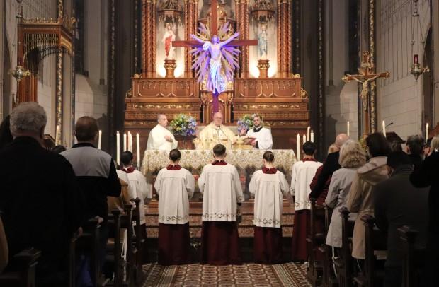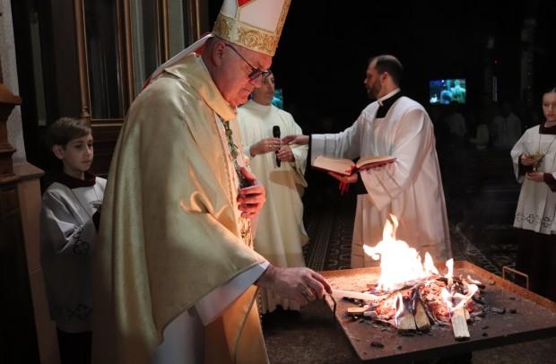 Dom José Gislon preside a Vigília Pascal na Catedral de Caxias, com a bênção do fogo e o acendimento do Círio Pascal