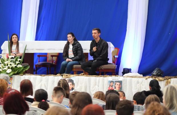 A atividade iniciou às 09h com animação e música e um momento de acolhida feito pelo bispo diocesano, Dom José Gislon. O encontro seguiu com a oração e a reflexão sobre a santidade e os jovens, a partir do testemunho dos santos que há poucos dias foram canonizados pela Igreja: São Carlo Acutis e São Pier Giorgio Frassati. A dinâmica foi conduzida pela equipe da Pastoral Vocacional e pelo bispo emérito da Diocese de Caxias do Sul, Dom Alessandro Ruffinoni.
