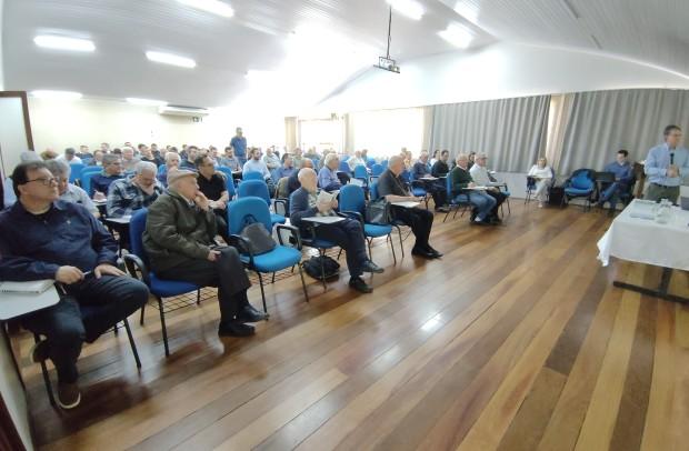 O clero diocesano e religioso que atua nas paróquias e comunidades da Diocese de Caxias do Sul esteve reunido na terça e quarta-feira, 11 e 12 de novembro, no Centro Diocesano de Formação Pastoral (CDFP), para dois dias de formação e atualização sobre a gestão administrativa e pastoral. O encontro foi assessorado pela equipe do escritório Benincá Soluções Contabeis, de Erechim, que assessora a Mitra Diocesana e teve a presença do bispo de Caxias do Sul, Dom José Gislon.