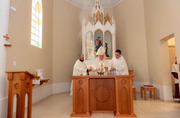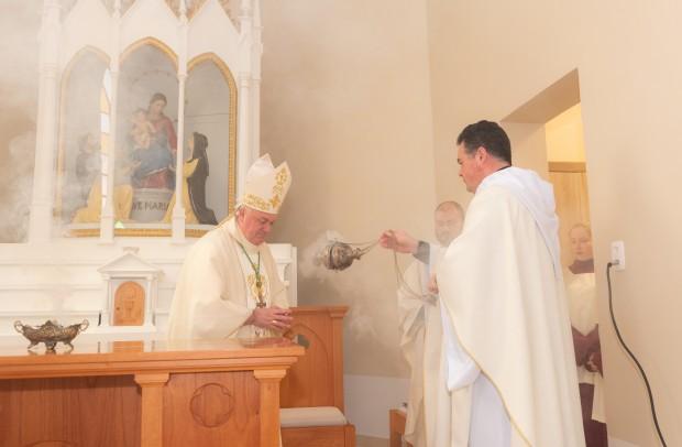 O altar e toda a igreja foram incensados, representando o sacrifício de Cristo e a elevação das orações dos fiéis até o trono de Deus. O incenso foi queimado sobre o altar, simbolizando o sacrifício de Cristo. A iluminação do altar, seguida pela iluminação da igreja, relembrou a todos que Cristo é a luz para todos. Ao término da Missa ocorreu o descerramento do marco da dedicação da igreja.