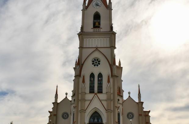 A planta da igreja com estilo neogótico, veio da França, com inspiração na Basílica de Lourdes, e nos dizeres de Dom José Baréa – primeiro bispo de Caxias do Sul, “ é o mais belo templo da região colonial italiana”. Ao longo do segundo semestre de 2023 e do início deste ano, a Paróquia realizou uma programação com Missas presididas pelos frades que foram párocos e atuaram no atendimento pastoral das comunidades de Garibaldi.