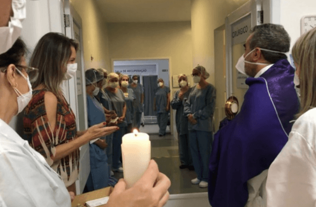 Visita do Santíssimo Sacramento aos hospitais: Na Semana Santa e nos dias que sucederam a Páscoa de 2021, o Santíssimo Sacramento, isto é, o próprio Jesus na Eucaristia visitou os hospitais Geral, do Círculo e Pompéia, em Caxias do Sul. A iniciativa dos capelães dessas casas de saúde foi realizada seguindo todos os protocolos sanitários, com o objetivo de levar a bênção e também dar alento aos profissionais de saúde e aos doentes. Também o Hospital da Unimed realizou uma ação de espiritualidade para os seus colaboradores. Ainda no mês de março, no dia 19, os freis capuchinhos que atendem a Paróquia Nossa Senhora de Lourdes, de Flores da Cunha, realizaram um momento de oração e bênção com o Santíssimo Sacramento em frente ao Hospital Beneficente Nossa Senhora de Fátima.
