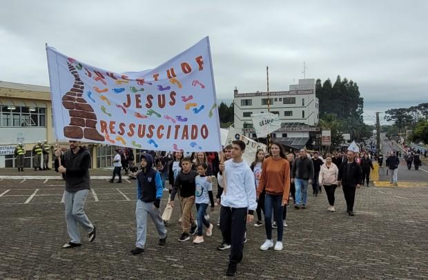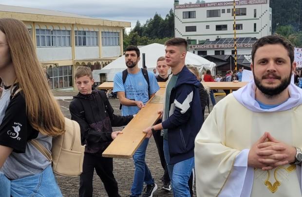 A Cruz Peregrina, o ícone de Maria e a capelinha do Beato Carlo Acutis, que entraram na procissão inicial e estão percorrendo as paróquias e comunidades de Farroupilha, em preparação à JTchêJ também foram entregues à juventude. Até a metade do mês de junho, irão peregrinar pelas comunidades da Paróquia Jesus Ressuscitado.