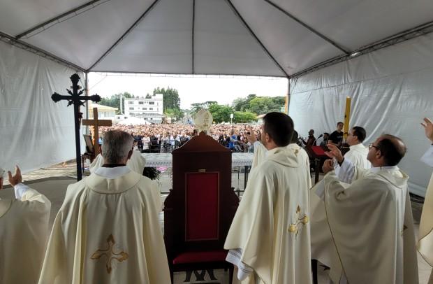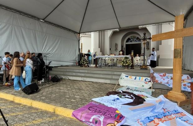 Missa campal das 10h30min reuniu jovens de diversas partes da Diocese de Caxias do Sul; na oportunidade, aconteceu o lançamento oficial da 7ª Jornada Diocesana da Juventude (JTchêJ)