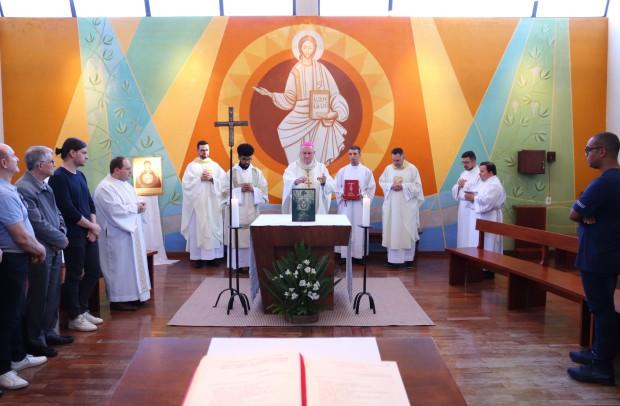 Encontro iniciou com a Missa da Solenidade de Nosso Senhor Jesus Cristo, Rei do Universo, presidida pelo bispo diocesano, Dom José Gislon; logo depois, uma confraternização reuniu seminaristas, padres e leigos que têm ligação com a Casa formativa