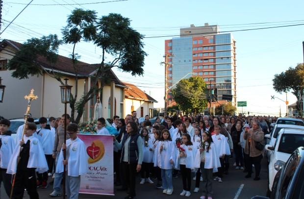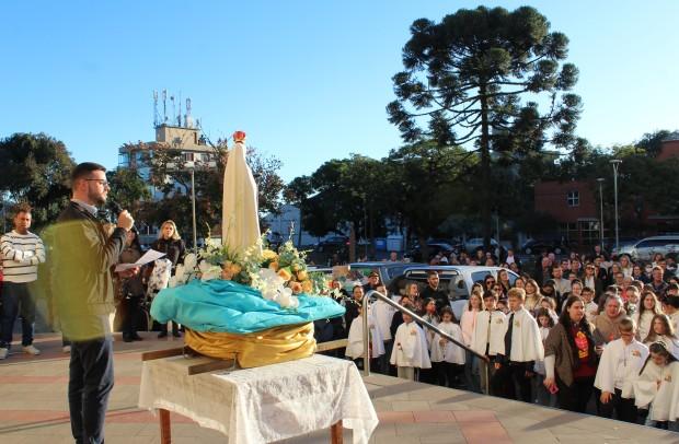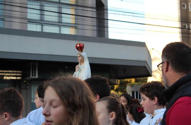 No dia festivo, 13 de maio, a récita do Terço aconteceu durante uma procissão com a imagem de Maria pelas ruas do bairro Cidade Alta, com a presença da Pastoral Vocacional da Diocese de Caxias do Sul e das famílias da Catequese