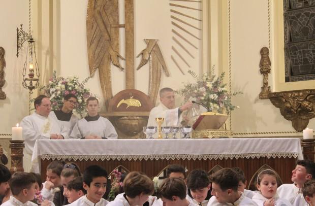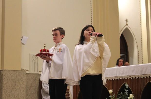 O dia festivo foi concluído com a Missa presidida pelo pároco, padre Pedro Caríssimi, com a presença do vigário paroquial, padre Miguel Mosena, e do diácono Cristian Fabiani, que será ordenado sacerdote no dia 21 de maio, às 15h, na Igreja Matriz Cristo Rei. Ao final da celebração da Eucaristia as crianças e adolescentes da Catequese realizaram o ato solene de coroação da imagem de Nossa Senhora de Fátima.