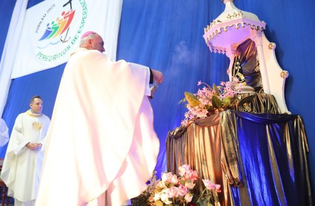 O ponto alto do 45° Encontro de Zeladoras foi a Missa presidida pelo bispo diocesano de Caxias do Sul, Dom José Gislon, e concelebrada por diversos padres. A liturgia da Solenidade de Nossa Senhora Aparecida apresenta o Evangelho das Bodas de Caná, em que Maria intercede a Jesus e ali acontece o primeiro dos sinais Dele. “Maria sempre nos aponta o caminho, o seguimento do Seu Filho Jesus, porque a Maria foi mãe, foi serva e servidora e discípula do Senhor Jesus. O centro de toda a caminhada de vida espiritual é sempre a pessoa do Cristo”, expressa o bispo.