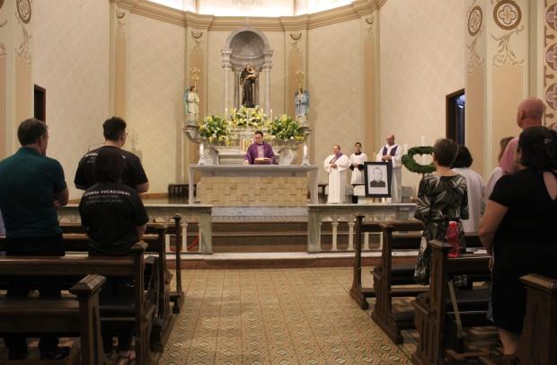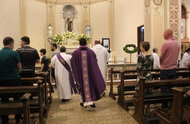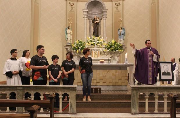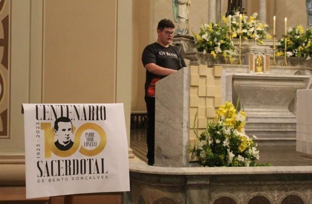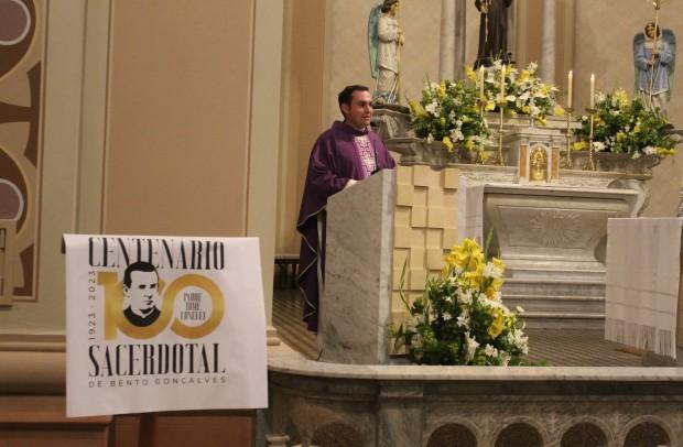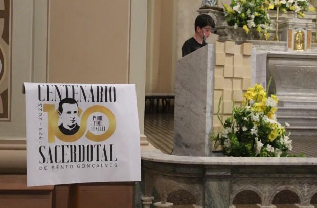 Um quadro com a foto do padre Tomé Lunelli foi levado ao presbitério, isto é, ao altar do Santuário Santo Antônio durante a procissão de entrada da Missa, que foi presidida pelo coordenador da Região Pastoral de Bento Gonçalves e do Grupo Vocacional, padre Miguel Mosena. Em sua homilia, ele salientou a importância do Centenário Sacerdotal para resgatar a importância de rezar e valorizar as vocações, em sintonia o projeto diocesano para o Ano Vocacional do Brasil. "Que este centenário possa nos ajudar a permanecer sóbrios e vigilantes o tempo todo, como nos recorda a liturgia do I Domingo do Advento. Que não estejamos vigilantes somente na Casa do Senhor, mas quando a gente sai dela, com o Senhor que habita nela, e aí estamos na família, nas escolas, nas comunidades, nas empresas, no poder público, e em tantos lugares. Irmão e irmã, o Senhor habita onde tu estás, porque a vocação é um chamado de Deus e uma resposta que deste no teu Batismo. É tarefa nossa, enquanto Igreja, ajudar as pessoas a perceberem que o Senhor habita em seus corações. O Senhor habita esta cidade", salientou