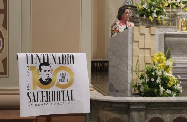 Ao final da Missa, o pároco da Paróquia Santo Antônio, padre Volmir Comparin, que iniciou as pesquisas sobre o centenário, recordou a história de padre Tomé Lunelli. A partir de trechos do jornal Il Corriere d'Italia, publicado a partir da iniciativa do pároco de Bento Gonçalves, o italiano Henrique Domingos Poggi. Nas edições de número 45 e 46, do informativo semanário, publicadas em 09 de novembro e 16 de novembro, estão noticiados o convite para a primeira Missa solene, de Lunelli, no dia 15 de novembro, às 10h, na Matriz de Bento Gonçalves e, posteriormente, os relatos da programação festiva de acolhida do novo padre, descrito como "pio e virtuoso sacerdote", de palavras simples e claras. Além de presidir a Eucaristia na igreja Santo Antônio, também o fez em sua comunidade de São Valentim, no dia 16 de novembro de 1923. Após permanecer dois meses em Bento, sua terra natal, em janeiro de 1924, partiu para Canguçu, no território da Arquidiocese de Pelotas, onde exerceu seu ministério.