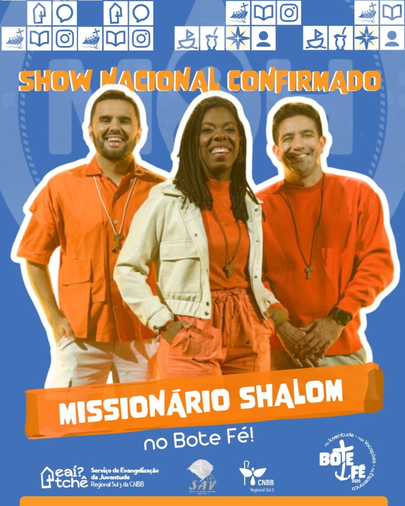 A juventude católica do Rio Grande do Sul está se preparando para viver o momento mais aguardado do ano: o Bote Fé. O encontro que vai proporcionar um dia especial de fé, comunhão e evangelização será realizado no dia 15 de novembro, no Parque do SESI, em Caxias do Sul. Para tornar a experiência ainda mais inesquecível, a organização anunciou o grande show nacional do evento com a banda Missionário Shalom.