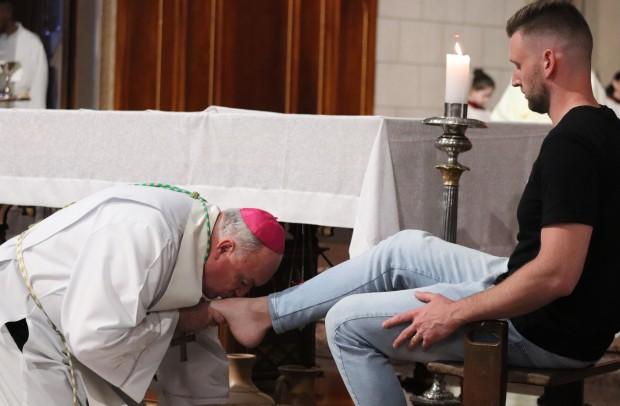 O bispo também conduziu o rito do lava-pés que foi organizado em comunhão com o Jubileu dos 2025 anos do nascimento do Senhor. Foram lavados os pés de pessoas das várias idades que Cristo também viveu. O momento iniciou com o lava-pés de uma gestante, depois um bebê, passando por outras idades da infância, até um adolescente com 12 anos e um adulto com 33 anos, idade em que Jesus foi preso, morto e ressuscitou. Eles tiveram os pés molhados, enxugados e beijados por Dom José.