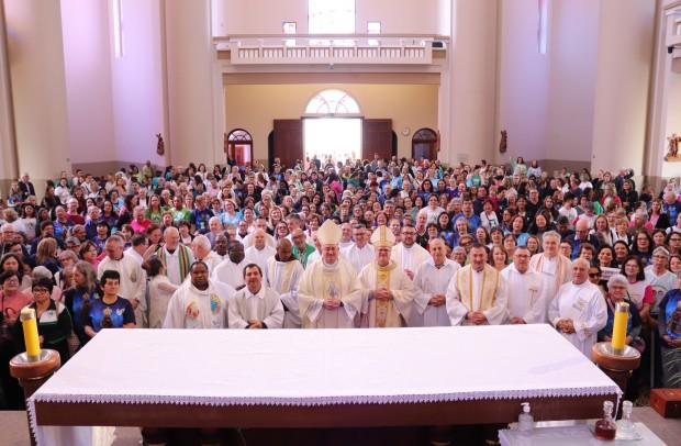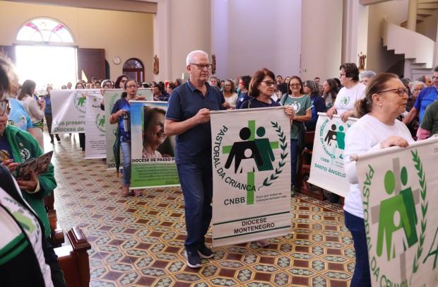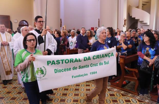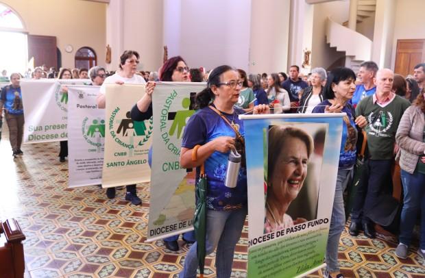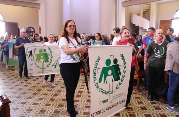 A programação iniciou na avenida Dom José Barea com a procissão reunindo líderes e coordenadoras da Pastoral da Criança das 18 arqui/dioceses do Rio Grande do Sul, seguida de Missa festiva, almoço e partilha com a coordenadora nacional