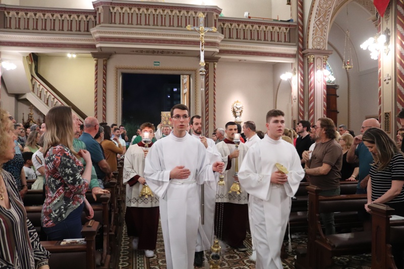 Os participantes do Grupo de Jovens Carlo Acutis, da Catedral, também participaram da celebração. A segunda noite do Tríduo marcou a comemoração dos 150 anos da Imigração Italiana e dos 125 anos da dedicação da então Igreja Matriz Santa Teresa D'Ávila de Caxias do Sul, em outubro de 1900, pelo bispo da Diocese São Pedro do Rio Grande do Sul, Dom Cláudio José Gonçalves Ponce de Leão (até então o Rio Grande do Sul tinha somente uma diocese). Com a criação da Diocese de Caxias do Sul, em 1934, desmembrada da Arquidiocese de Porto Alegre, a Igreja Matriz foi elevada a Catedral.