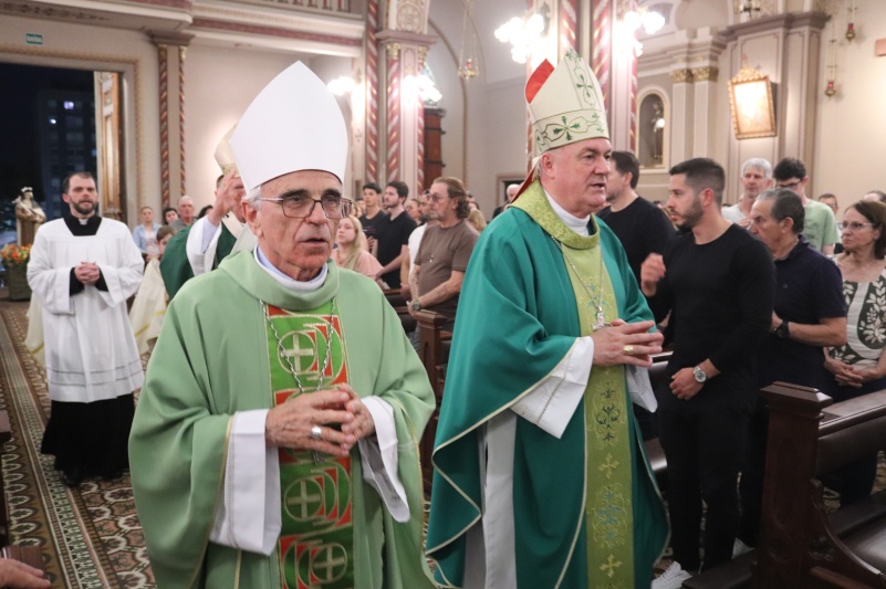 Segunda noite do tríduo em preparação à Festa de Santa Teresa D'Ávila, padroeira da Catedral e da cidade de Caxias do Sul, foi presidida pelo arcebispo de Porto Alegre, cardeal Jaime Spengler e fez memória da dedicação pelo bispo da capital, em 1900