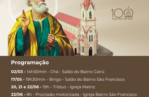 Os eventos da 139ª Festa em honra a São Pedro se entendem até o dia 19 de julho, onde será realizado o tradicional Bingo, com início às 19hs no salão da Comunidade São Francisco.