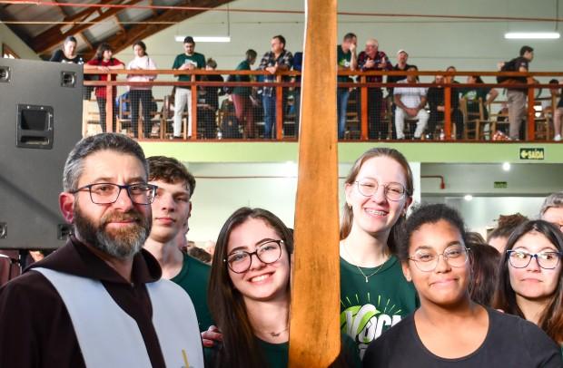 No domingo, 17 de agosto, a Paróquia São Pedro de Garibaldi, representada pelo pároco, frei Edson Gilberto Cecchin, recebeu das mãos do pároco da Paróquia São Luiz Rei, município de Ipê, a cruz e a bandeira, que são símbolos da Jornada Vocacional dos Capuchinhos do RS. O evento que marca o aniversário de 130 anos da chegada e estabelecimento dos freis Capuchinhos na cidade, será realizado no mês de agosto do próximo ano.