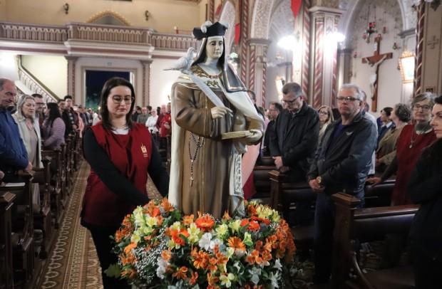 Repetindo a boa participação de fiéis das outras duas noites, a conclusão do tríduo que prepara a Festa de Santa Teresa D'Ávila, no domingo, 12 de outubro, foi marcada pelo olhar à cruz de Cristo e a homenagem a Nossa Senhora Aparecida, na Catedral Diocesana de Caxias do Sul - Paróquia Santa Teresa D'Ávila. O bispo diocesano, Dom José Gislon, presidiu a Missa com a temática "Na Cruz de Cristo, nossa Esperança". A Eucaristia foi concelebrada pelo pároco, padre Volnei Vanassi.