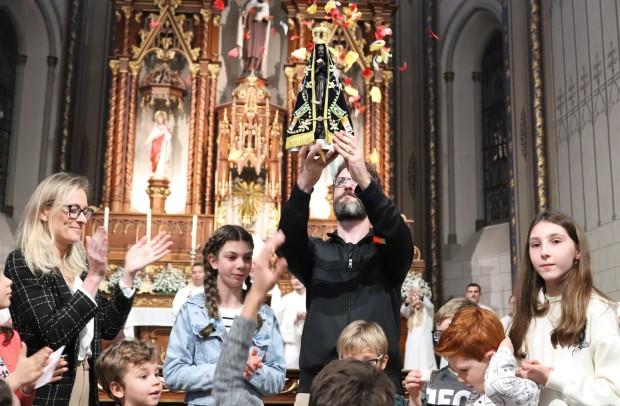 Ao final, dois gestos marcaram a conclusão do tríduo: após algumas breves palavras do pároco, padre Volnei Vanassi, leigos das pastorais e serviços distribuíram ao povo de Deus um cartão com um crucifixo, que foi abençoado por Dom José, para recordar a importância da cruz de Cristo para os católicos; da entrada da Catedral uma família levou até o altar a imagem de Nossa Senhora Aparecida, que foi coroada e homenageada com pétalas de rosas. O bispo diocesano abençoou as crianças e as famílias com a Padroeira do Brasil.