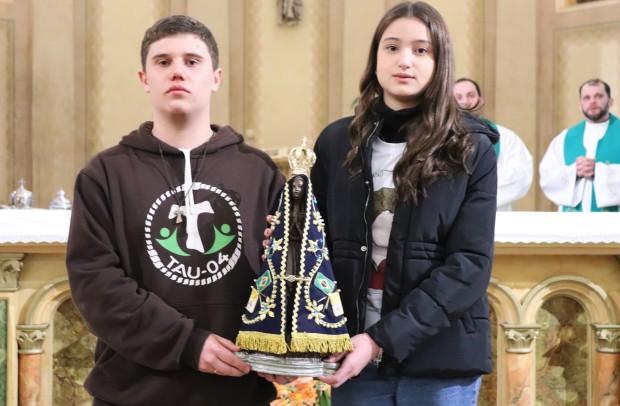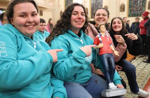 Ao final da Missa, a imagem de Nossa Senhora Aparecida foi conduzida ao altar e todos cantaram juntos a consagração à Mãe de Deus. Na sequência, os jovens que tinham consigo imagens, terços, estampas dos então beatos foram convidados a se aproximarem do altar para abençoar os objetos religiosos. Padre Leonardo abençoou a todos, pedindo a intercessão de Acutis e Frassati, e fez o sinal da cruz sobre o povo com a relíquia (fios de cabelo) de Carlo Acutis, que veio do Santuário de Caravaggio, em Farroupilha, para esta noite especial de oração.