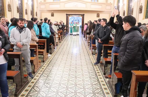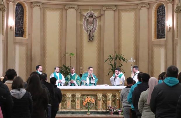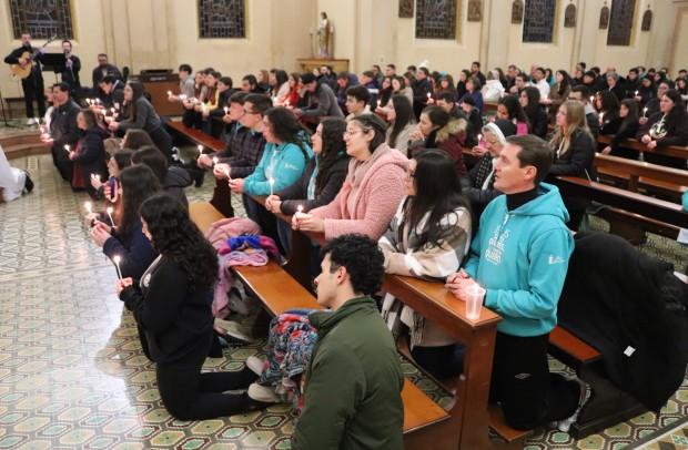 Organizada pelo Setor Juventude da Diocese de Caxias do Sul, a atividade teve programação intensa que iniciou às 22h30min com a Missa, que foi presidida pelo vigário geral e coordenador de Pastoral, padre Leonardo Inácio Pereira. A Eucaristia foi concelebrada por outros padres, dentre os quais o assessor diocesano da juventude, Gustavo Predebon.