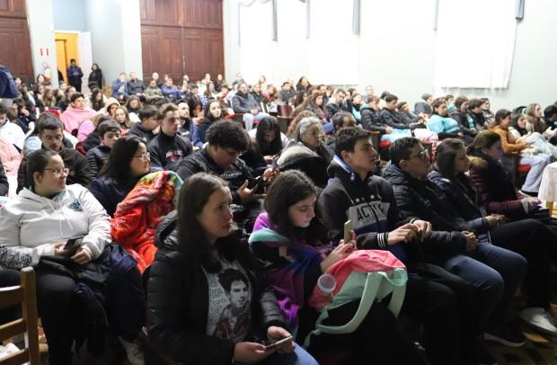 Nem o frio de 6ºC afastou os jovens dos grupos, pastorais e movimentos de evangelização juvenil da vigília que antecedeu a canonização dos agora santos Carlo Acutis e Pier Giorgio Frassati, na virada de 06 e madrugada de 07 de setembro. O encontro, no Seminário Diocesano Nossa Senhora Aparecida, em Caxias do Sul, reuniu mais de 200 pessoas de diversas paróquias de Caxias, Bento Gonçalves, Farroupilha, Flores da Cunha, dentre outras cidades.