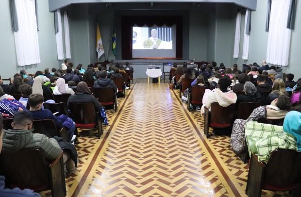 Organizada pelo Setor Juventude da Diocese de Caxias do Sul, a atividade teve programação intensa que iniciou às 22h30min com a Missa, sessão de cinema, quiz, luau, adoração ao Santíssimo e concluiu às 07h deste domingo assistindo a canonização
